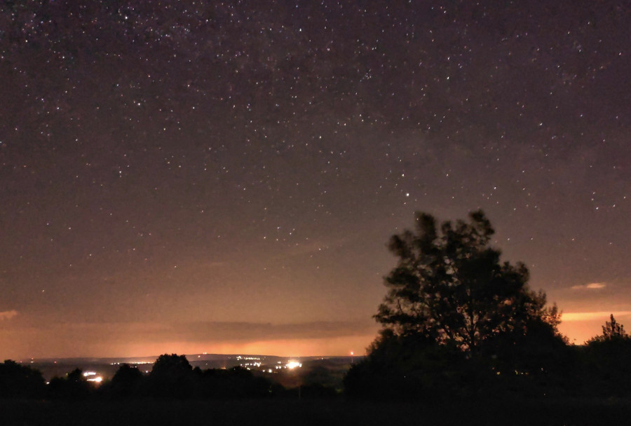 A világ fényszennyezettségét bemutató térkép jó kiindulási alap lehet, ha erre alkalmas helyet keresünk. A fekete színnel jelölt területek azok, ahonnan a maga természetes valójában láthatjuk az éjszakai égboltot – ilyen hely Magyarország területén nincs. A kék részeken minimális fényszennyezettséggel kell megküzdenünk: a legjobb hazai helyek a Zselic, a Hortobágy és a Körös-Maros Nemzeti Park, megyénkben pedig a Magas-Bakony, Bakonybél környéke várja a fény elől menekülőket. A térképen zölddel jelölt részek a falusias körzetek, itt a horizont-közeli égitestekről már le kell mondanunk. Az alábbi fotó is egy zöld területen készült a Bakonyban: Budapest annyira okádja magából a fényt, hogy majdnem száz kilométerre a Clark Ádám tértől is megöli a keleti láthatárt.