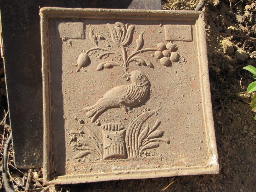 Az egyik ilyen darab teljesen épen vészelte át a földben töltött évtizedeket, sőt, megtisztítása után még egy extra szenzációval is szolgált, ugyanis a két téglalap alakú feliratmező az 1817-es évszámot rejtette! Az évszám nem feltétlenül datálja a csempe készítési idejét, hiszen elképzelhető, hogy az adott nyomódúcot több évig is használták, mindenesetre jól összecseng az 1819-es datálású téglákkal.