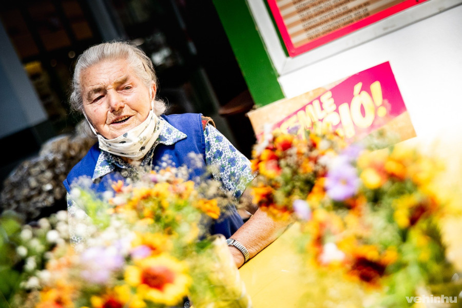 Körutunk elején, rögtön a bejárattal szemben egy idős nénibe botlunk, aki gondosan elkészített virágcsokrait árulja. Megtudtuk, hogy a Mariska néni 92 éves (!) és hetente kétszer, Ösküről jár be eladni a kertjében szedett virágokat. A szépkorú eladóktól egyébként nem kérnek bérleti díjat, ezzel is próbálják segíteni őket Edit elmondása szerint.