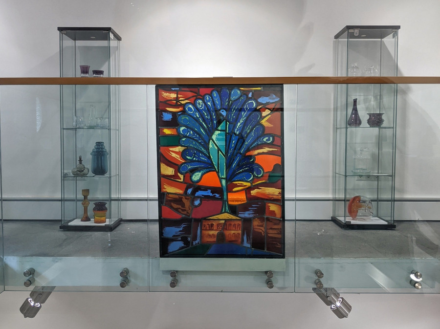 Az üveg aztán az ’50-es évektől került a művészek látóterébe, ettől kezdve a művészi gonddal elkészített egyedi, gyakran mély filozofikus üzenetet közvetítő alkotások létrehozása elvált az ipari termeléstől. A ’70-es évektől az üveggel dolgozó művészek már nemzetközi szimpóziumokra jártak, és megyénkben is szerveztek ilyeneket, az ajkai üveggyár kettőnek is helyet adott. Az ajkai szimpóziumon létrejött alkotások adták a veszprémi gyűjtemény első darabjait, amit aztán – nagyban köszönhetően Gopcsa Kata gondos munkájának – folyamatosan újabb darabokkal bővítettek, és ezt a küldetést Gopcsa utódai is továbbvitték a múzeumban. Így alakult ki az a kincs, aminek nagy részét még nem láthatta a nagyközönség, és amibe most egy kiállítás erejéig bepillantást engednek.
