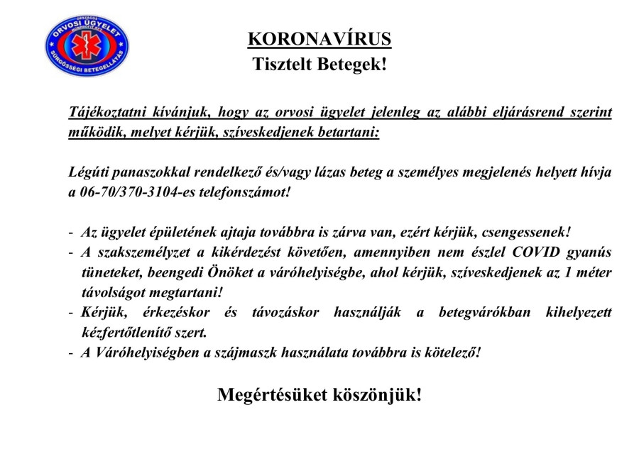 Orvosi ügyelet tájékoztató