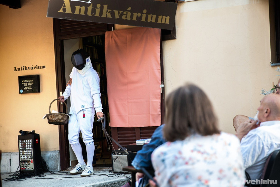 De mégis, mit keresett a könyvbemutatón egy vívófelszerelésbe bújt szerző, aki barokk zenei aláfestés mellett játszatott le egy francia sakkjátszmát a közönséggel?