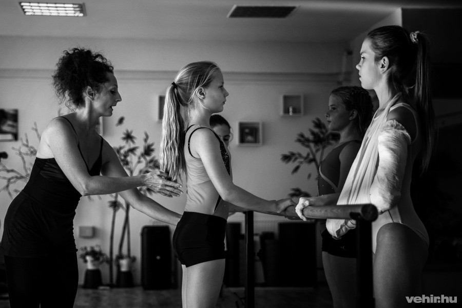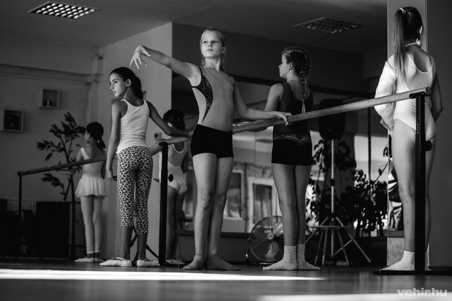 „Első pozíció, párhuzamos lábbal állunk, lazán tesszük a kezünket a rúdra, majd plié, relevé. Hajlít a térd, leszorít a sarok és nyújt a térd” – sorolja az instrukciókat Turós-Máté Kinga, a Kék Madár Táncműhely vezetője, miközben maga is mutatja a gyakorlatokat. Kezdő klasszikus balett órán járunk épp, igaz néhányan a 7-12 éves kislányok közül már több éve is balettoznak, míg mások nemrég vágtak bele. A koncentráció az arcokon mindenesetre egységes: nagy fegyelemmel hajtják végre a gyakorlatokat. Időnként a lábak kicsit megremegnek, ám ezen nincs szégyellnivaló: a balett kőkemény izommunka, és a legegyszerűbb gyakorlatok is csak látszólag egyszerűek. A tánc öröméért azonban maximálisan megéri, az pedig a fegyelmezettség mellett is egyértelműen látszik, hogy a növendékek nem szívesen mondanának le az órákról.