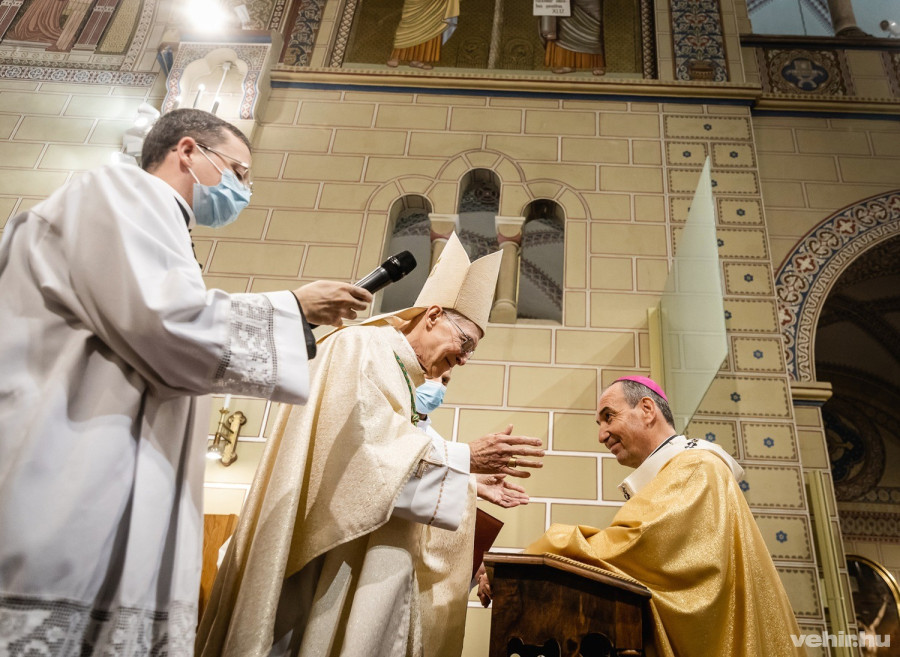 A Veszprémi főegyházmegye élére tavaly kinevezett Udvardy György vállára Michael August Blume apostoli nuncius helyezte fel a palliumot szombat délelőtt, a járvány miatt zártkörű szentmise keretében.