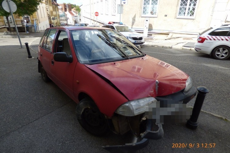 A sofőr a Szabadság téren a kocsi elejével felugratott a járdára, és ott kidöntött egy közlekedési táblát. A rendőr a megfújatta az alkoholszondát a járművezetővel, a vizsgálat pozitív eredménnyel zárult.