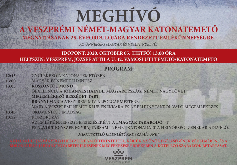 Meghívó a veszprémi német-magyar katonatemető megnyitásának 25. évfordulójára rendezett emlékünnepségre