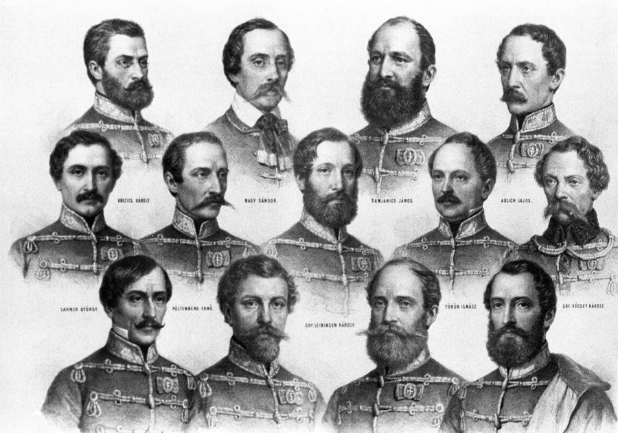 "A lövések és a megfeszülő kötelek tizenhárom életnek vetettek véget. Tizenhárom egyedi, megismételhetetlen sorsnak" - mondta. Hozzátette: a magyar honvédsereg 12 tábornoka és egy alezredese korra, származásra, vallásra, habitusra és ízlésre nézve különféle volt, egy soknemzetiségű birodalom alattvalóiként akadt közöttük a magyarok mellett német, szerb, horvát, magas rangú birtokos és szegénysorba született, királypárti és republikánus érzelmű, olyan, aki magyarul sem tudott, és olyan, aki más nemzetiségű létére magyar asszonyt vett feleségül. "Atyai jóbarátok, hűséges fegyvertársak és örökké vitázó, kemény ellenfelek voltak. Különböző jellemek, akik egyek lettek a halálban".