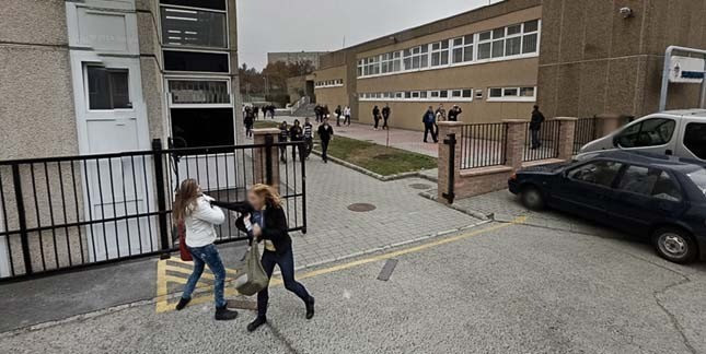 Nem ez az első alkalom egyébként, hogy Veszprémben nem odaillő jelenetet örökített meg a Google. Egy előző frissítésben még szerepelt egy utcai verekedés is az egyik középiskola előtt, ahol a kézmozdulatokból ítélve a két diáklány valamin összekülönbözött és a kevésbé elegáns módját választották a vita rendezésének.