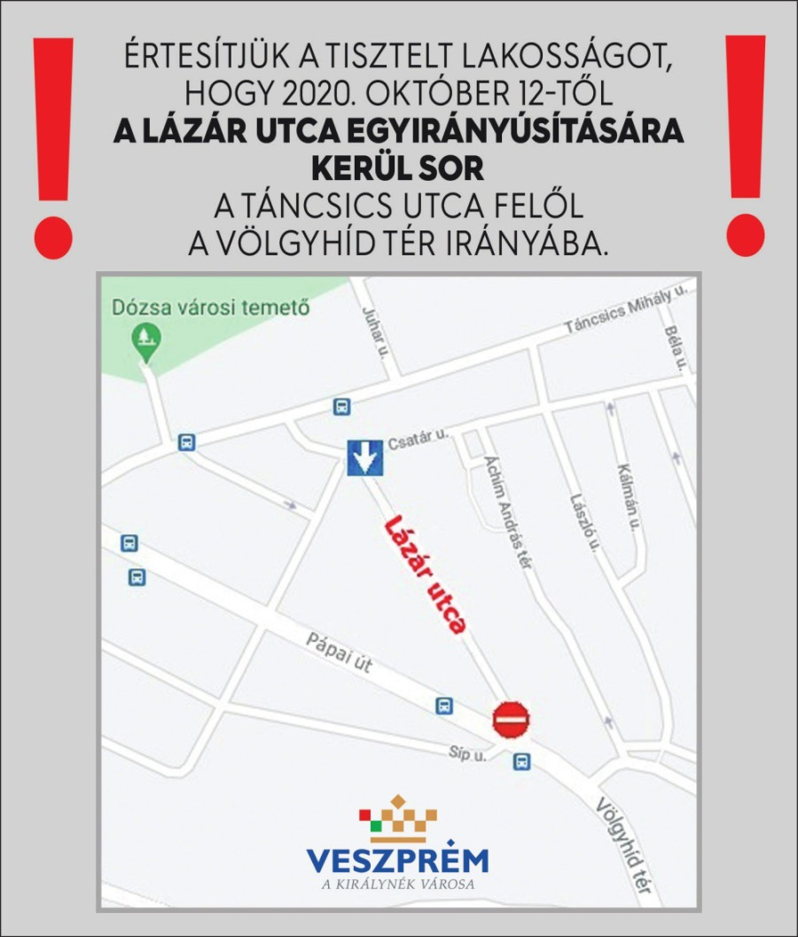 Egyirányúsítják a Lázár utcát