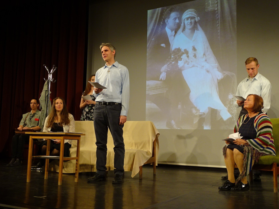 Az előadás első fele a Domján család XX. századi történetének egy-egy epizódját villantotta fel, főként a nagymama és az édesanya sorsát tárgyalva. A második rész Domjánék személyes tragédiáját mutatta be a versek útján, mintha a két szülő elevenedett volna meg a színen, akik a nézők előtt próbálták felfejteni, megfejteni, egyetemista korú fiuk öngyilkosságának hátterét. Az irodalmi est utolsó harmadát Domján Gábor egykori hivatásának tapasztalatai ihlették, a postás sztorik következtek, amelyekben humorból is volt bőven.