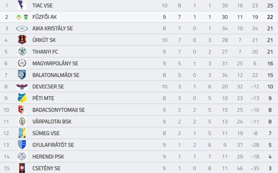 A Devecser-Balatonalmádi ütközetet elhalasztották, míg vasárnap a Balatonfűzfő 6-1-re ütötte ki a vendéglátó Csetény együttesét.