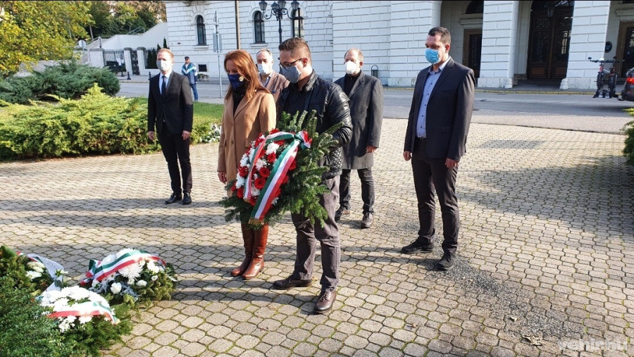 A városi Fidesz frakciója délelőtt koszorúzott az emlékhelynél.