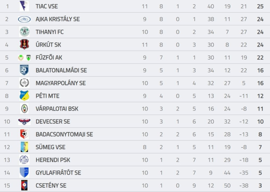 Ha a papírformára tekintünk, akkor a VEHIR.HU megyei élvonal tizenkettedik fordulójában a bajnoki címre hajazó együttesekre egytől egyig kötelező feladat vár hétvégén. Hiszen a listavezető TIAC a tizennegyedik helyen álló Gyulafirátót fogadja, a második pozícióban helyezkedő Ajka a tizenkettedik Sümeg otthonába látogat, míg a harmadik Tihany pedig a tizedik helyen portyázó Devecsert látja vendégül.
