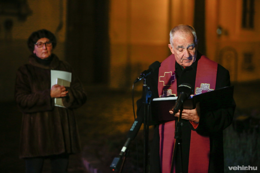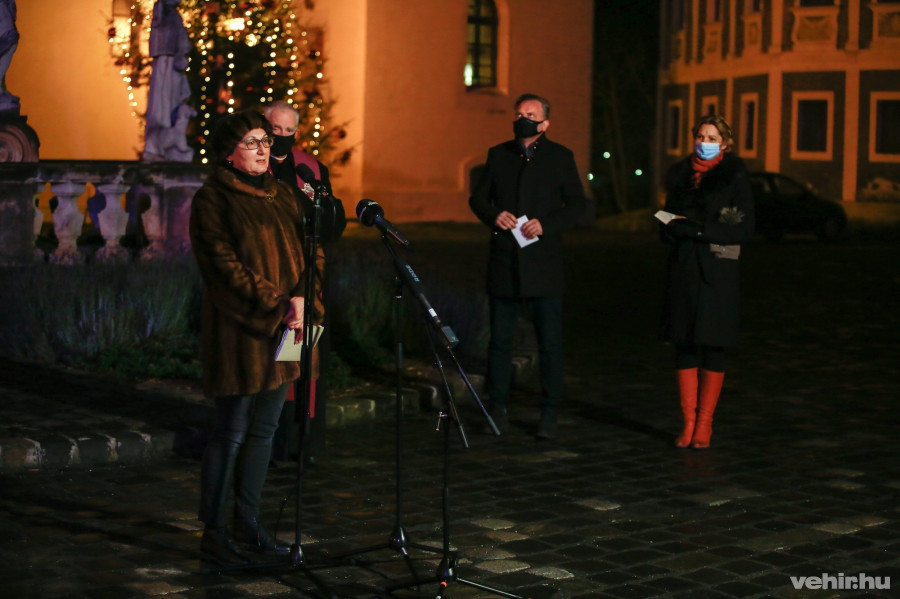 Szombat este a Várban felállított adventi koszorú második gyertyáját Brányi Mária alpolgármester és Nagy Károly apát kanonok gyújtották meg közösen.