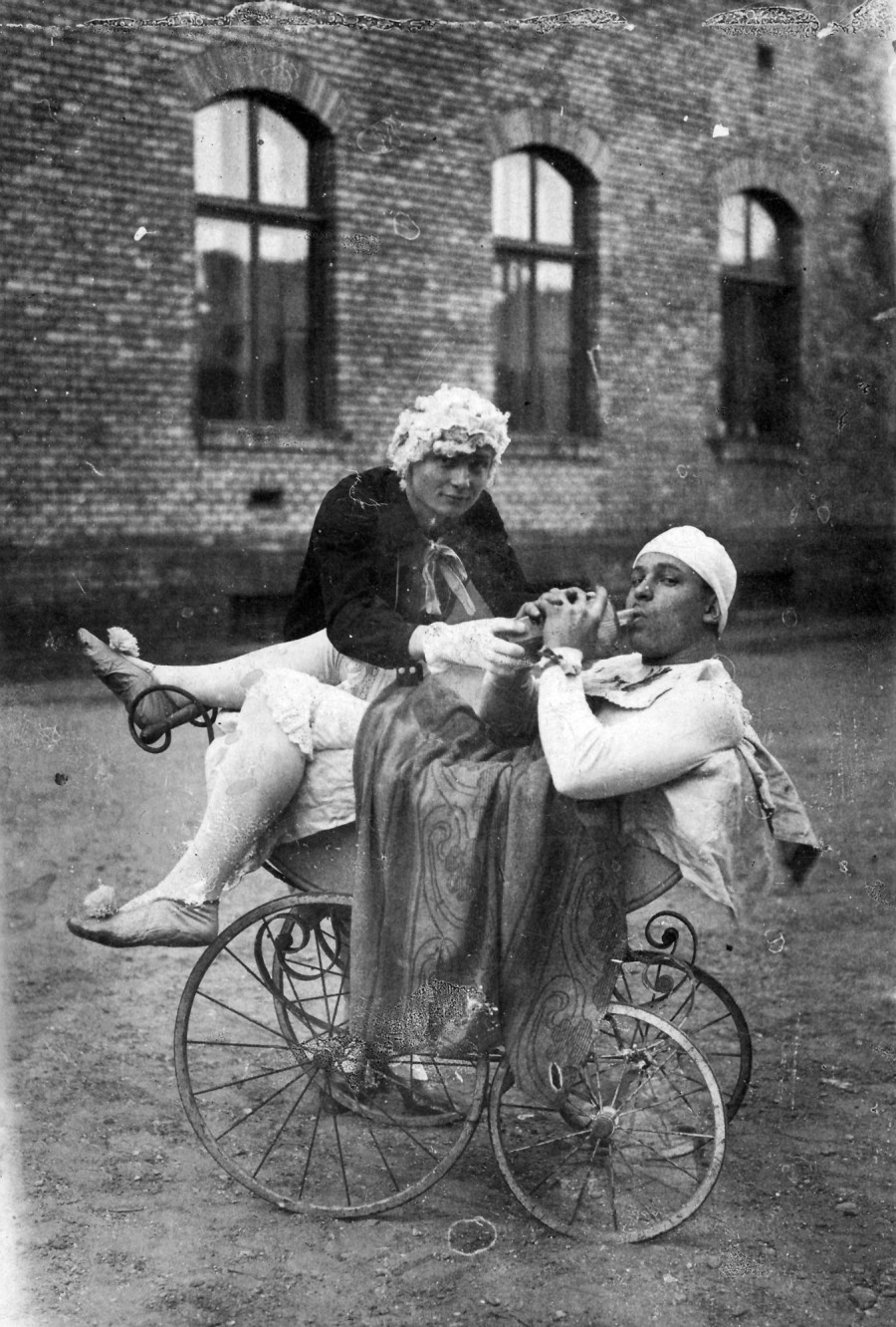 Persze voltak olyanok, akik magasról tettek a fényűzésre és egyszerűen csak bolondozni akartak. Ennek a párosnak a két tagja kétségtelenül ebbe a kategóriába tartozott. Ó, azok a bohó 20-as évek. / Fotó: 1923, adományozó: Jurányi Attila