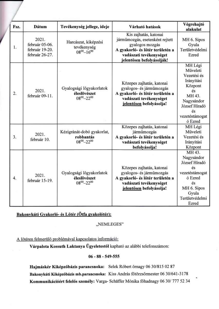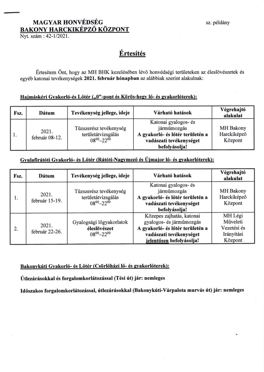 Lőtéri értesítő, 2021. február