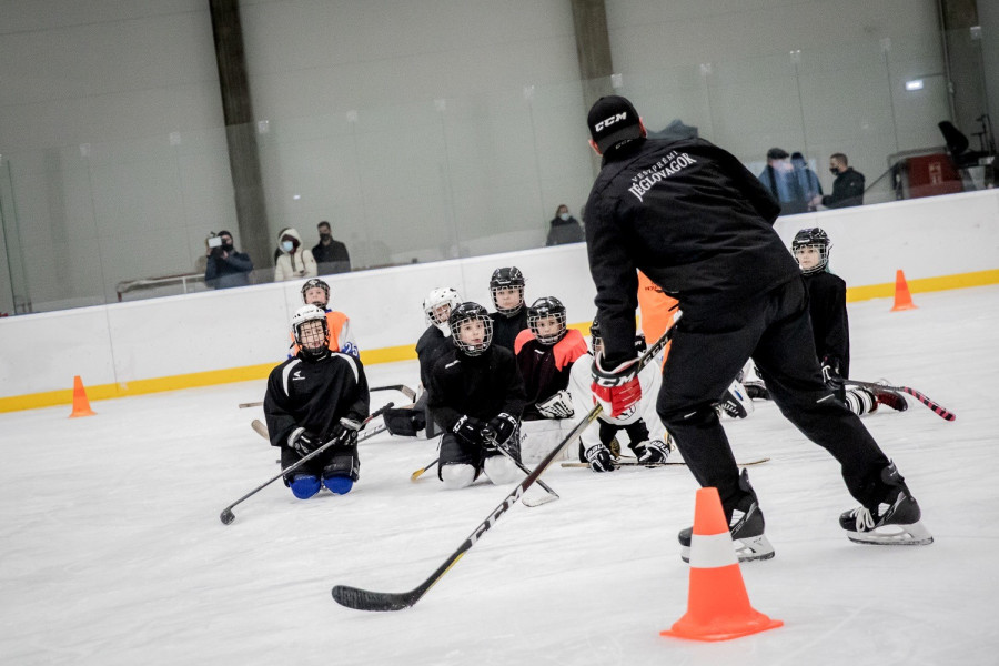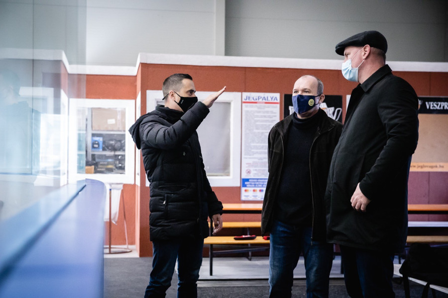 A beruházás első ütemében nagyságrendileg egymilliárd forint értékben, TAO-s támogatásból felépült a jégcsarnok, beszerezték és beüzemelték a gépészeti elemeket, kialakították az ideiglenes szociális helyiségeket, öltözőket. A csarnoképületben 56x26 méteres, szabványos jégpálya található, amit alapvetően az utánpótlás jégkorongozók használnak, de – mint azt Németh Balázs, a Veszprém Fiatal Sportolóiért Közhasznú Alapítvány vezetője elmagyarázta – felnőtt jégkorongmérkőzések befogadására is alkalmas, akár nemzetközi szinten is.