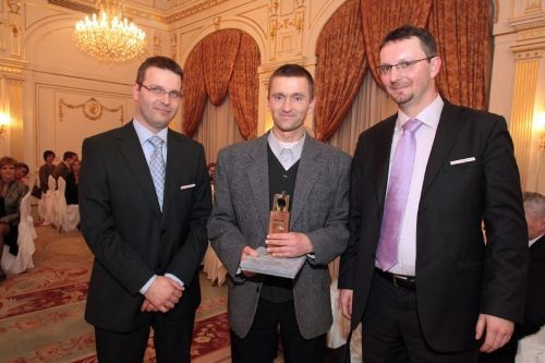 A díjazott Bódy Kornél és a díjazók, Tóth Viktor és Takács Zoltán