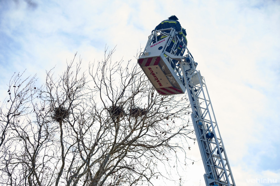 Csütörtök délelőtt a madárfészkeket a város megbízásából a katasztrófavédelem munkatársainak és eszközeinek segítségével távolították el a fákról.