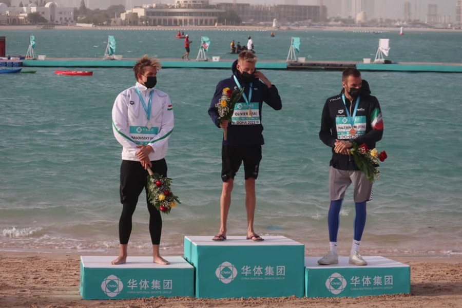 A 10 kilométeres viadalon - a Katarban kialakított 2000 méteres pályán öt kört kellett megtennie a mezőnynek - csak az olimpiai bronzérmes francia Marc-Antoine Olivier tudta megelőzni a 23 éves magyar versenyzőt. A magyarok közül az első tízbe került Huszti Dávid is.