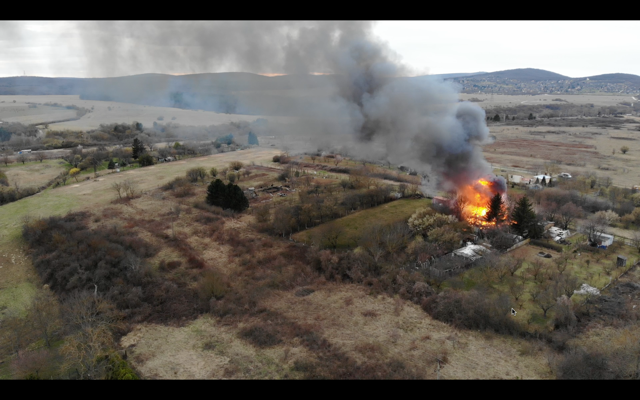 Egy nyolcvan négyzetméteres lakóház ég teljes egészében Veszprémben, a Veszprémvölgyi utca melletti külterületen. A városi hivatásos tűzoltók négy vízsugárral már körülhatárolták a tüzet, folytatják a munkálatokat.