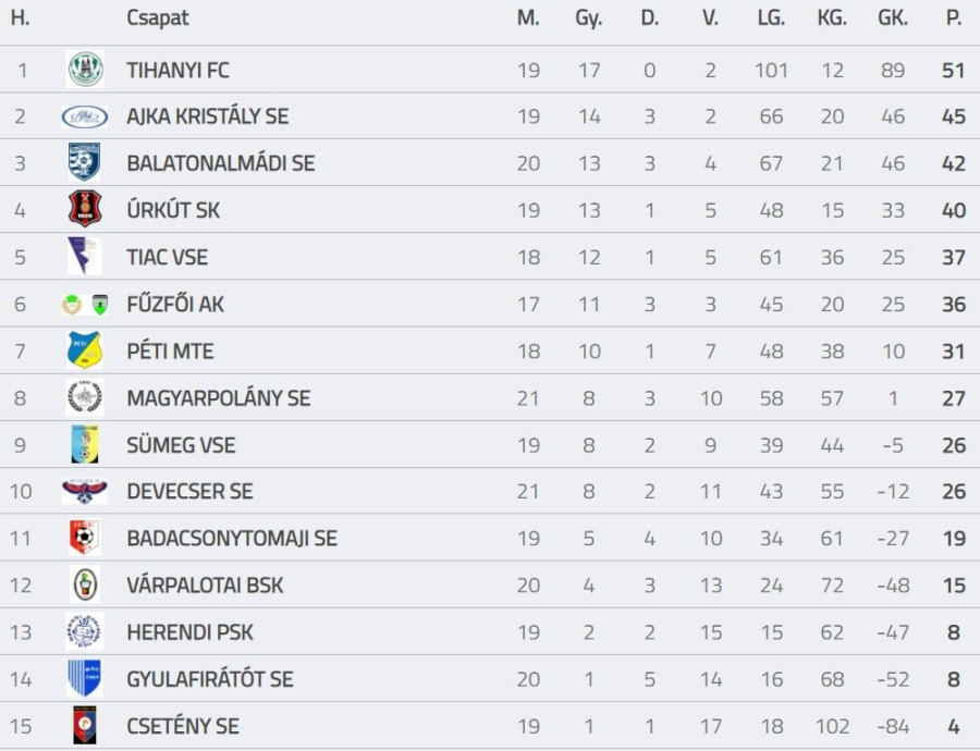 Tabella forrása: adatbank.mlsz.hu