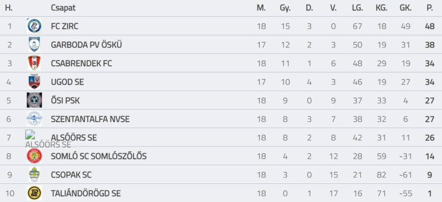 Miután az éllovas Zirc az elmúlt körben leikszelt a Szentantalfával, nagy meglepetésre az Ugod otthonából is egy ponttal távozott. Ettől függetlenül a zircieknek továbbra is tízpontos előnyük van a bajnokságban.