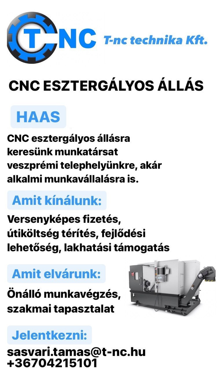 CNC esztergályos álláshirdetés a TNC-nél