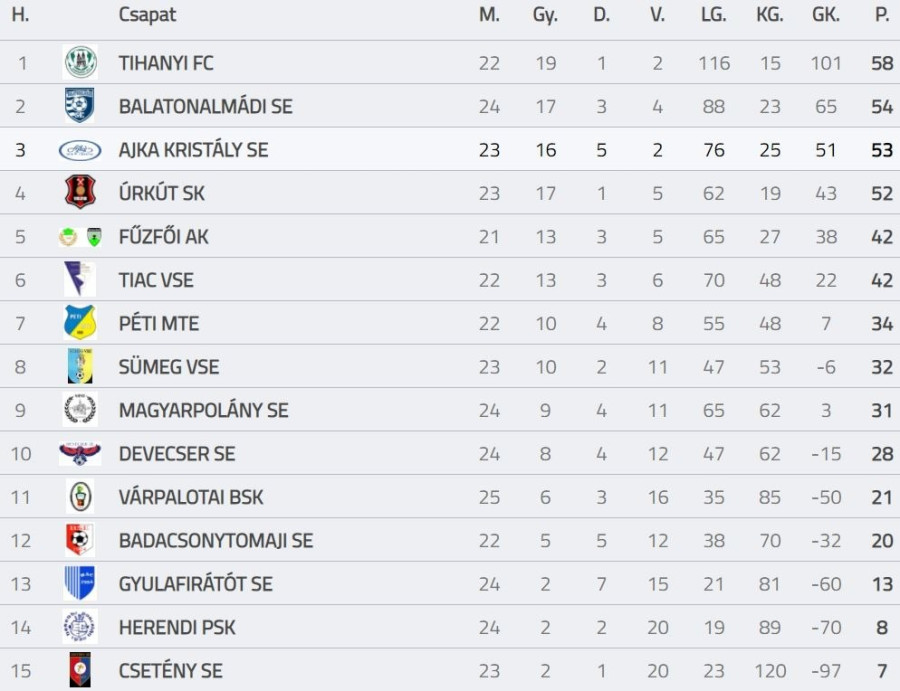 Újabb győzelmével a Balatonalmádi tapad az éllovas Tihanyra. Igaz, utóbbi is könnyed győzelmet jegyzett, hiszen a tópartiak 9-0-ra múlták felül a vendég Gyulafirátót alakulatát.