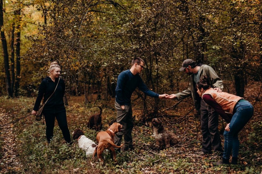 „Nem kimondottan fajtaspecifikus, inkább az egyed fontos. Erős képzést kell kapjanak, ami hosszútávú folyamat. Az alapokat meg lehet tanítani hetek vagy hónapok alatt, de tapasztalataink szerint 2-3 szezonra van szükség ahhoz, hogy megbízhatóvá váljanak” – meséli Vivien, majd hozzáteszi: mindegyik kutyájukat maguk képzik. „Preferenciákat tudunk tanítani nekik. A 120 fajta föld alatti gombából a magyar vizsla például jellegzetesen a nyári szarvasgombát keresi, és abból is a nagyobb darabokat” – egészíti ki Miklós.