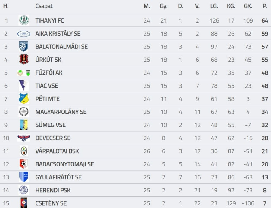 Tabella forrása: adatbank.mlsz.hu