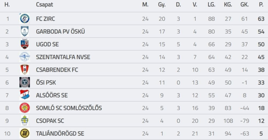 Míg a listavezető Zirc tovább erősítette pozícióját, miután 5-1-es diadallal távozott Csopakról. A zircieknek immár szinte zsebben a bajnoki cím: hétvégén már matematikailag is bebiztosíthatják azt.