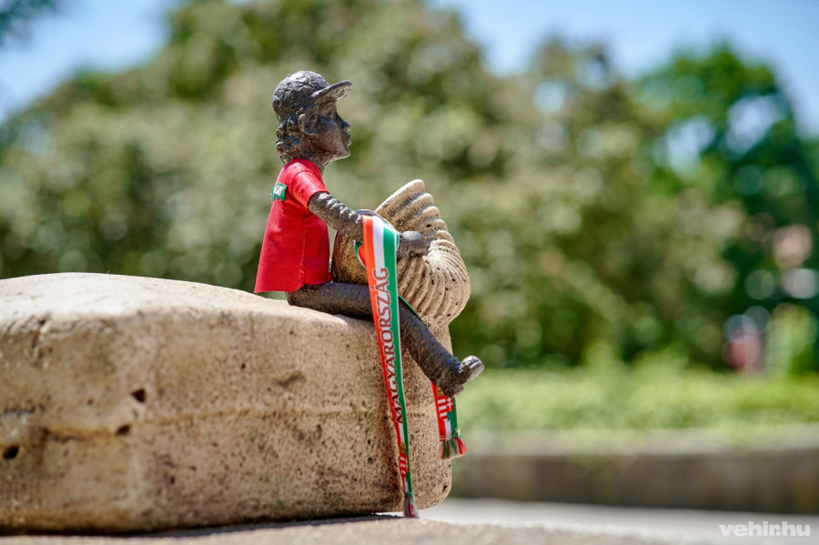Úgy tűnik, a szurkolói láz Veszprém apró figuráira is ráragadt: nemzeti színű mezt és szurkolói sálat vett fel a napokban Ödön, az utcazenész és LeoNóra, a kislány is. Ernő, a vár hős őre ugyan szolgálatban lesz a világesemények alatt is, egy sálat ő is magára kanyarintott.