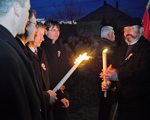 – Magyarország újra győzhet áprilisban – mondta Kósa Lajos, a Fidesz vezető politikusa határozott hangvételű megemlékezése során. – A magyar forradalmat olyan politikusok vitték győzelemre, akik azt vallották, hogy a szabadság a törvényesség rendjén alapul. A nép akkor igazi politikai közösség volt, tanulhatnánk tőlük – mondta s felidézte a történelmi múltat: a király április 11-én fogadta el az „április törvényeket, s ekkor mondta ki Kossuth Lajos is azt a vitathatatlan tényt, hogy győzött a magyar forradalom. „Jöjj el szabadság, te szülj nekem rendet” idézte Kósa József Attila verssorait, amelyet a baloldali érzelmű embereknek ugyanúgy a figyelmébe ajánlott, mint a jobboldali eszméket hirdetőknek. Kósa szerint ’48-ban kulcsfontosságú szerepe volt az összetartásnak, amit nekünk is meg kell tanulnunk.