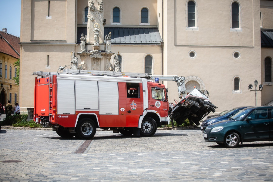 Kedden kora délután egy kisebb kosaras autó megbillent és rádőlt a Szentháromság téri szoboregyüttesre a Várban. A balesetben kisebb mértékben megrongálódott a műemlék is, a veszélyhelyzet elhárításában a tűzoltók segítenek.