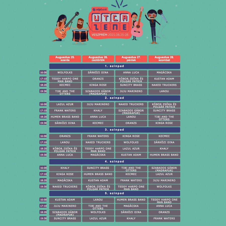 A fesztivált augusztus 25-28. között rendezik meg Veszprém belvárosában.