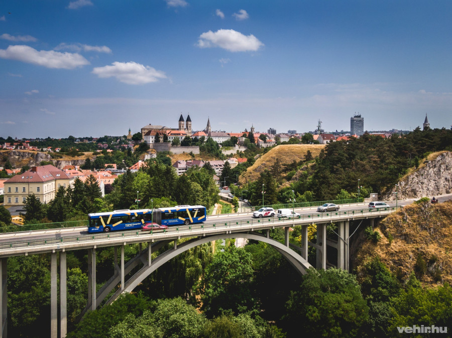 A járat hétfőn a 3-mas útvonalán közlekedett, így már többen felfedezhették a menetrend szerint közlekedő, küllemében látványos járművet Veszprémben.