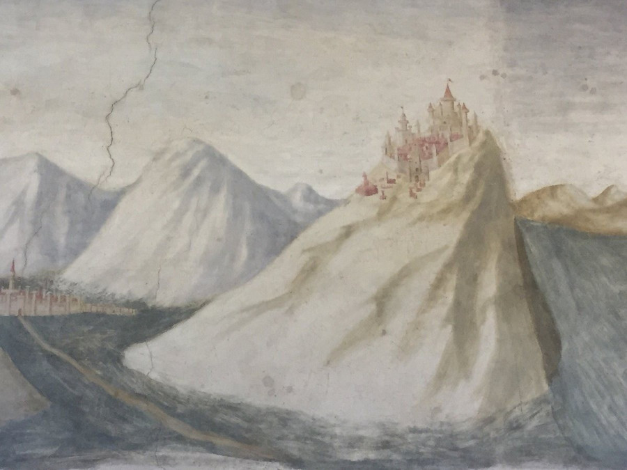 Számomra ezzel együtt is az ősi vár-ábrázolás egy fekete-fehér, homályos és majszos kópiája dereng vissza időről-időre az emlékeimben egy régi és kopott könyvből. Az a vár nekem még Branda, Masolino tűnékeny freskójánál is rejtelmes-sejtelmesebb. Az alkonyi szomorú méltósággal tüntet, ez júliusi ragyogásban, kora-reneszánszosan szép derűben.
