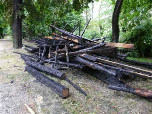 Miután a tető teljesen porig égett, a hajnali eső átáztatta