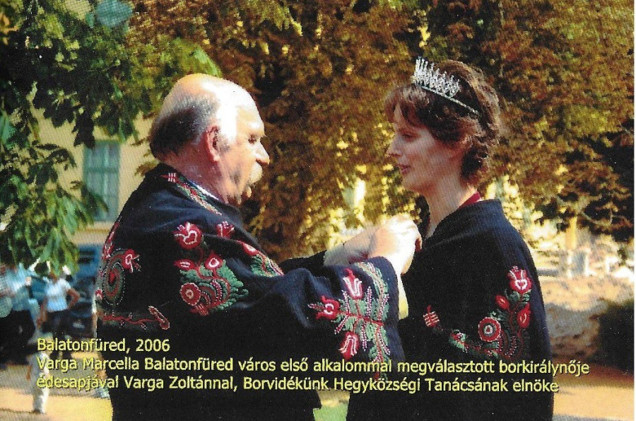 Nem tudom, Varga Zoltán kertészmérnök, aki több mint két évtizedig volt a hegyközségi tanács elnöke, mikor volt büszkébb: akkor, amikor a borai nyertek a versenyen, vagy amikor a lányát, Varga Marcellát borkirálynővé választották és ő tehette fejére a koronát.