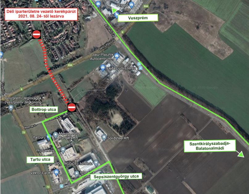 2021.08.24-én kedden a Déli iparterületre vezető kerékpárút műtárgyépítés építés miatt lezárásra kerül.
