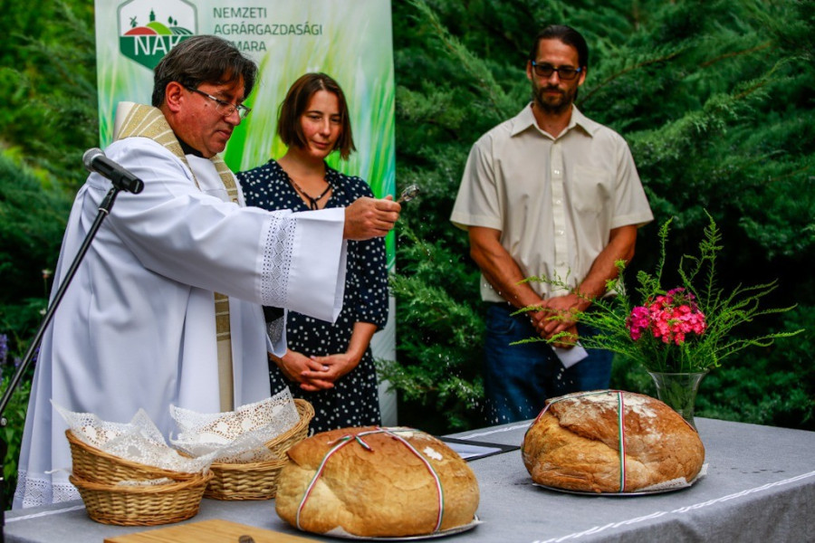 Az új kenyeret aztán dr. Takács István érseki általános helynök áldotta meg, majd a Nemzeti Agrárgazdasági Kamara részéről Takács Miklós ismertette a Magyarok Kenyere programot. Ennek keretében idén tizenegyedik alkalommal gyűjtöttek a Kárpát-medence minden területéről a gazdák által adományozott búzát, amivel a rászorulókat, főleg gyerekeket segítő szervezeteket támogatják.