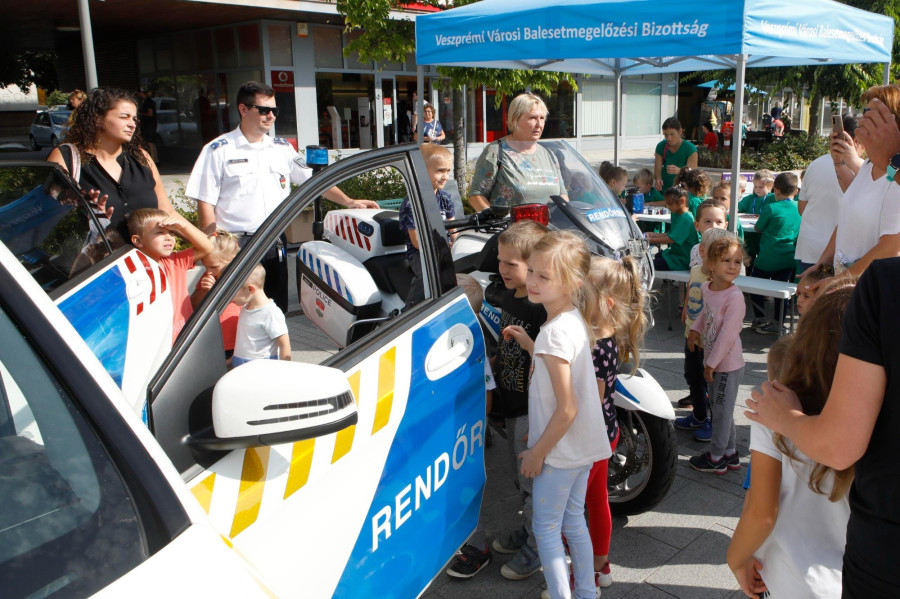 Csütörtök délelőtt a Kossuth utcán számos interkatív foglalkozással készült a Veszprémi Rendőrkapitányság a kisgyermekek részére, amelyek lényege az volt, hogy játékos formában tanulják meg a helyes és biztonságos közlekedés fortélyait.