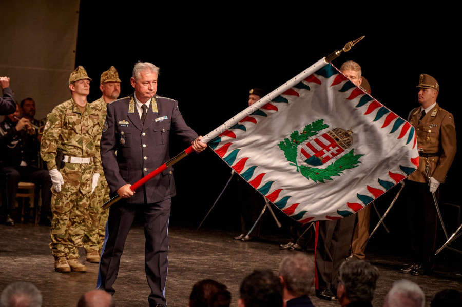 A hivatalos zászlóavató ünnepségen, csütörtök délelőtt az Agorában dr. Kun Szabó István vezérőrnagy köztársasági elnöki főhadsegéd, Szabó István honvédelmi államtitkár és Sándor Zsolt vezérőrnagy, a Magyar Honvédség Parancsnokának helyettese jelenlétében áldották és szögelték meg a zászlót, amit aztán dr. Kun Szabó István vezérőrnagy vett át a zászlókísérettől és adta át Berec Zoltán parancsnoknak. Az ünnepségen Veszprém önkormányzatát Brányi Mária alpolgármester képviselte.