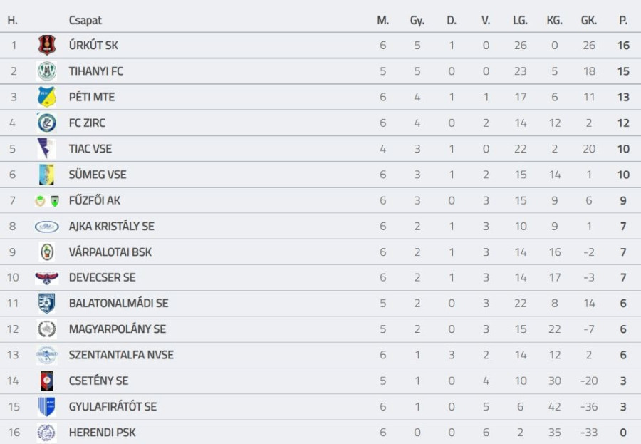 A mögöttünk hagyott hétvégén rengeteg találat esett a labdarúgó megyei I. osztály soron következő, hatodik fordulójában. Az éllovas Úrkút könnyed, 5-0-s diadalt aratott a sereghajtó Herend otthonában; előbbi így sikerrel megőrizte kapott gól nélküli mutatóját.
