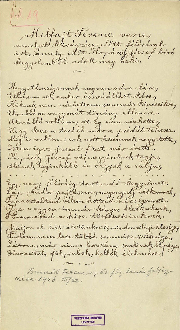 Milfajt Ferkó peréről és még számos helytörténeti témáról részletesebben a Veszprémi Szemle legújabb számában olvashatnak.