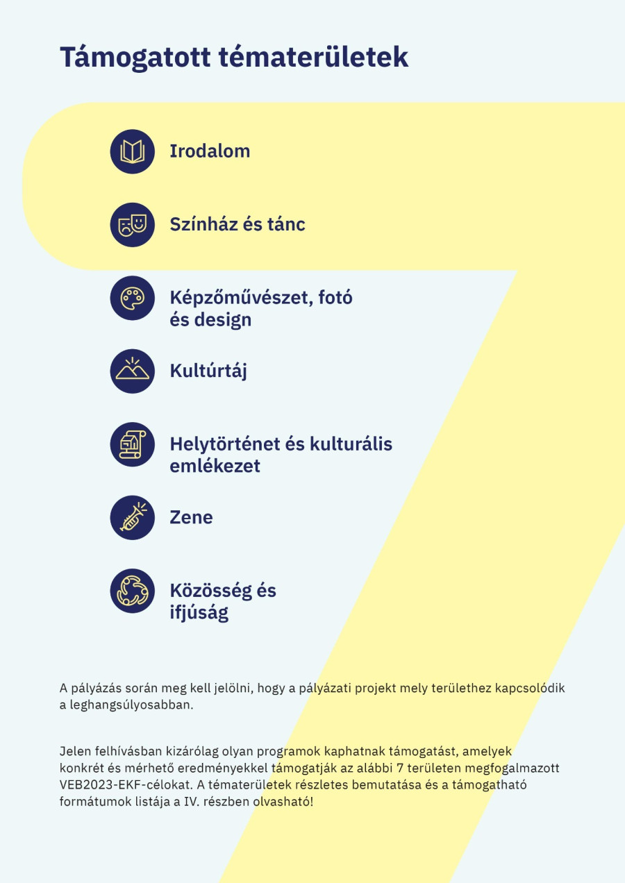 A most közzétett pályázat során olyan programok, események és kulturális célú fejlesztések kaphatnak támogatást, amelyek bevonják a helyi közösségéket, túllépnek az általános kulturális-művészeti célkitűzéseken, ugyanakkor nemzetközi mércével is látványos eredményeket tudnak felmutatni.