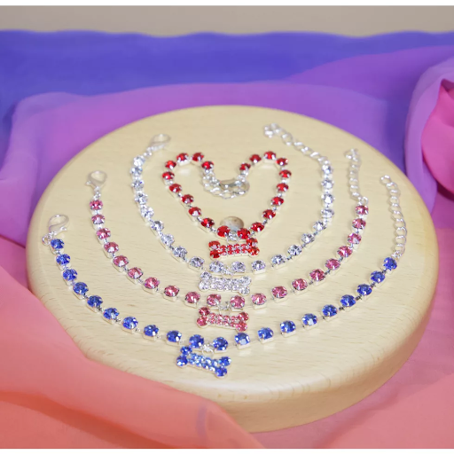 Lány kutya esetén szebbnél szebb díszes gallérok, csillogó láncok kölcsönöznek igazi díva külsőt.