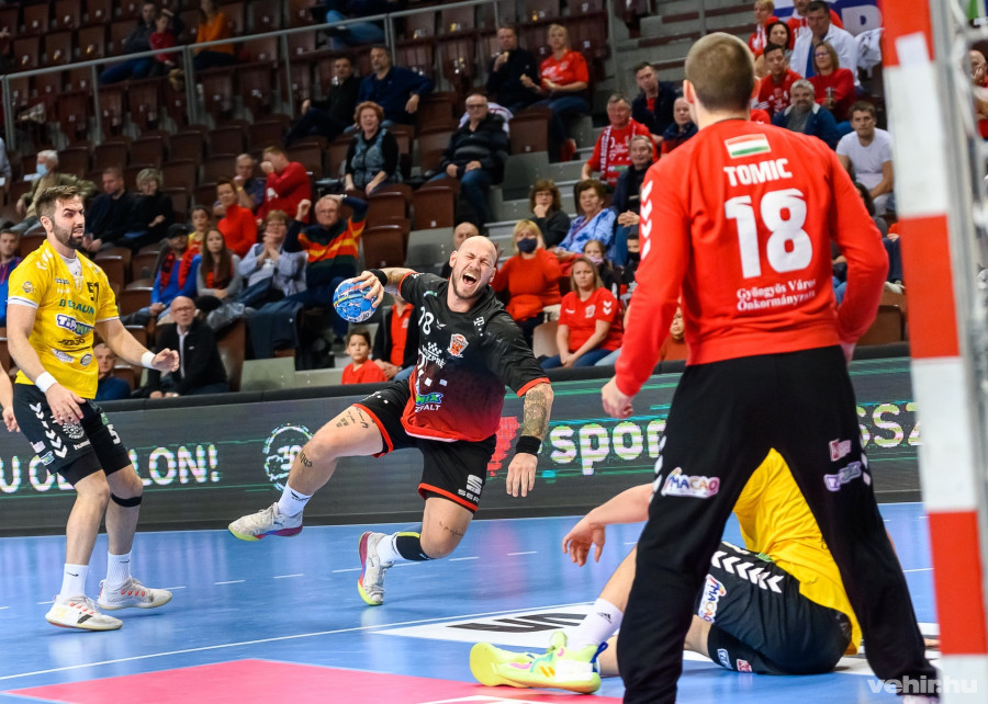 Időt is kért Konkoly Csaba. Tomicsot Nagy Benedek váltotta a gyöngyösi kapu előtt, Corralest pedig Cupara a túloldalon. Mahé hétméteresét ügyesen hárította lábbal az exveszprémi fiatal hálóőr, aki Nenadics bombáját is hatástalanította (44. perc: 21-15).