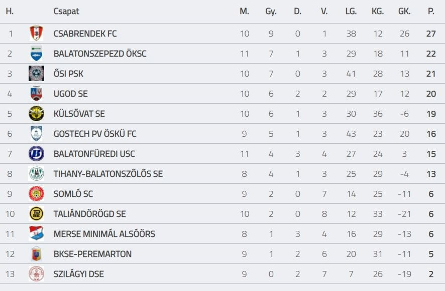 Immár a tizenegyedik fordulón is túl van a labdarúgó megyei II. osztály mezőnye. Az elmúlt hétvégén gólokban gazdag összecsapásokat vívtak a felek. A Csabrendek sikeresen bebiztosította listavezető pozícióját: vasárnap a Somló otthonában 5-1-es diadalt aratott az éllovas.